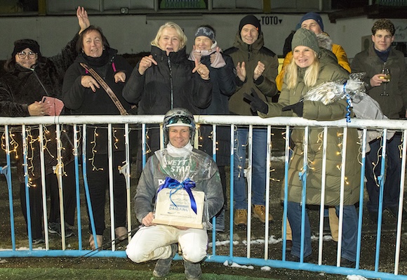 Mit dem Wettstar.de – Daglfinger Weihnachtspreis ausgetragen als Preis des Bayr. Staatministeriums für Ernährung, Landwirtschaft und Forsten, stand das sportliche Highlight als 7.Rennen auf der Karte. Die Prüfung die aus zwei Bändern gestartet wurde, begann für Desiderio (C. Schwarz) ideal, denn der Gramüller-Schützling sicherte sich sofort das Kommando vor den Trainingsgefährten Billy Kimber (P. Platzer) und Eberhard Truppo (M. Bock), wogegen der Mitfavorit Wim Hazelaar (C. Fischer) nicht glatt eintrat und kurz nach dem Start disqualifiziert wurde. Aus dem Zulagenband schnell den Anschluss an die vorderen Pferde herstellen konnte Tyron Hill (J. Franzl), der sich nach einer knappen Runde zum Angriff entschied, dabei allerdings von den Beinen kam und so ebenfalls am Turm landete. Letztmals gegenüber beschleunigte Desiderio erheblich, wodurch nur noch Billy Kimber und Eberhard Truppo folgen konnten, wobei zweiterer in den Schlussbogen hinein einen stark aussehenden Angriff lancierte, der allerdings nicht bis an die Spitze führte. Da machte sich Desiderio sicher frei und holte sich den Sieg im Wettstar.de – Daglfinger Weihnachtspreis in starken 1:14,6 / 2.100 m.