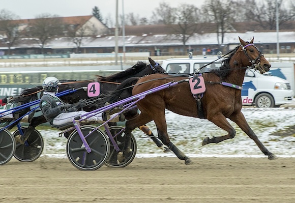 Letztgenannter entschädigte sich zwei Rennen später im Amateur-Hanidcap mit Magnum Stone. Dieser lief gute 1:17,5 / 2.100 m und hatte so die Situation gegen Veyron Bros (D. Schuch) und Gamin de Bertrange (J. Wiesner) zu jeder Zeit im Griff.