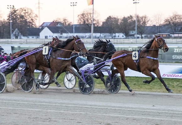 Die erste Überraschung gab es zum Auftakt der V6-Wette, denn gleich nach dem Start kam Favoritin Pearl Newport (R.Lindinger) von den Beinen und schied aus. Den Weg an die Spitze suchte Herbert Lorenz mit Vaiana, die beim Jahresdebüt eine glänzende Leistung ablieferte und zum Sieg kam. Überraschungen gab es auch auf den weiteren Plätzen, denn Treasure Venus (N. Reisenbauer) wurde ideal eingesetzt und holte sich den Ehrenplatz vor Lots of Love (J. Plankl), die ihre Karlshorster Leistung auch in München bestätigen konnte. Durch diesen Außenseitereinlauf war die Dreierwette nicht getroffen und auch in der V6-Wette dezimierten sich die am Leben gebliebenen Kombinationen von 7.386 auf 321, sodass es bereits nach dem Auftakt der Wette nach einem Jackpot roch.