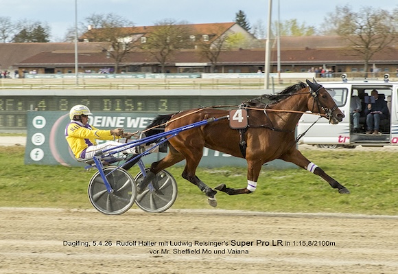 Zum Abschluss punktete Rudi Haller als einziger Aktiver doppelt, denn Super Pro LR übernahm nach dem Start sofort das Kommando und hielt über den Schlussbogen Mr Sheffield Mo (L. Franzl) so im Rücken, dass der Sieg der Reisinger-Stute nicht in Gefahr geraten konnte. Rang drei ging dahinter an die erneut gut gelaufene Vaiana (H. Lorenz).