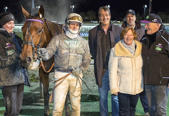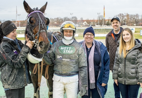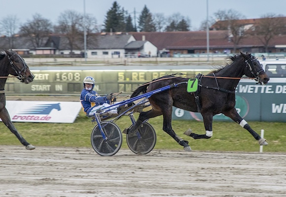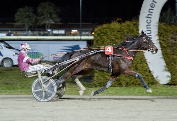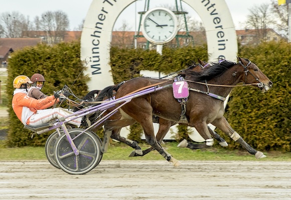 Einen vierten Treffer für das Team lila markierte Christoph Schwarz mit Sarafina. Die Stute präsentierte sich auch in Daglfing in guter Verfassung und holte sich den Sieg gegen Ahoi Diamant (M. Larsen), der nicht mehr ganz an die Stute heranreichte.